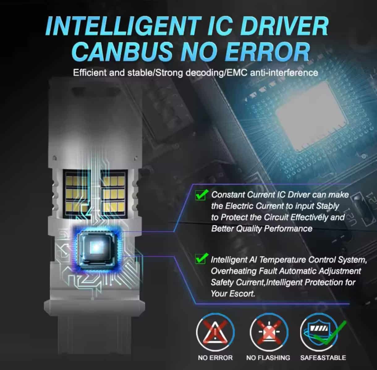 Becul LED T20 7440 este complet compatibil Canbus, ceea ce înseamnă că nu va genera erori de tip „bec ars” pe bordul mașinii tale. Este alimentat la 12V și are un consum redus de energie, fiind astfel o alegere eficientă din punct de vedere electric, fără a compromite intensitatea luminoasă. Protecțiile integrate împotriva supratensiunii și lipsa interferențelor radio contribuie la o funcționare sigură și stabilă.