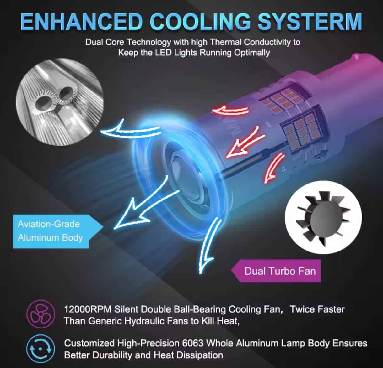 Construcția becului este robustă și durabilă, realizată din aluminiu de aviație 6063, un material recunoscut pentru proprietățile sale excelente de disipare a căldurii. Sistemul de răcire activă este asigurat de un ventilator ultra-silentios ce funcționează la 13.000 rotații pe minut, menținând o temperatură optimă de lucru chiar și în condiții solicitante. Acest mecanism contribuie la prelungirea duratei de viață a becului, estimată la peste 30.000 de ore de funcționare continuă.