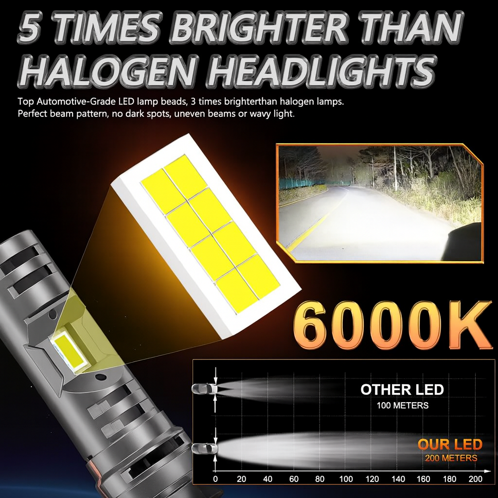 În concluzie, acest set de becuri LED H7 120W 6000K este soluția ideală pentru cei care caută performanță superioară, vizibilitate maximă și un design modern, într-un produs fiabil și ușor de instalat. Fiecare detaliu este gândit pentru confortul și siguranța șoferului, indiferent de condițiile în care se circulă.