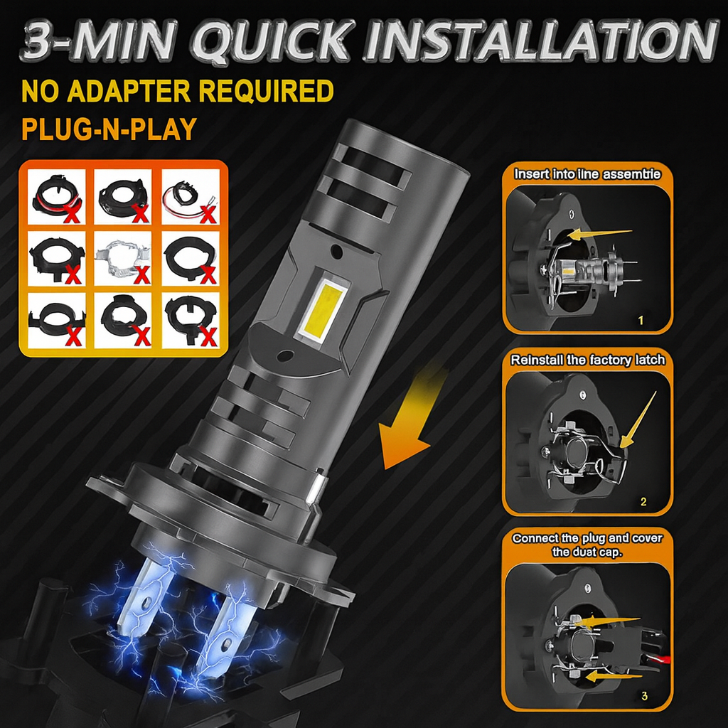 Lumina generată este de 6000K, o nuanță alb rece extrem de clară, perfectă pentru conducerea pe timp de noapte sau în condiții meteo nefavorabile. Datorită acestei temperaturi de culoare, contururile drumului, obstacolele și semnele de circulație devin mult mai vizibile, reducând semnificativ riscul de accidente și oboseala oculară. Becul este compatibil universal pentru soclu H7 și se instalează în doar câteva minute, fiind de tip plug & play. Nu necesită adaptoare speciale și se potrivește cu 99% dintre autoturismele moderne.