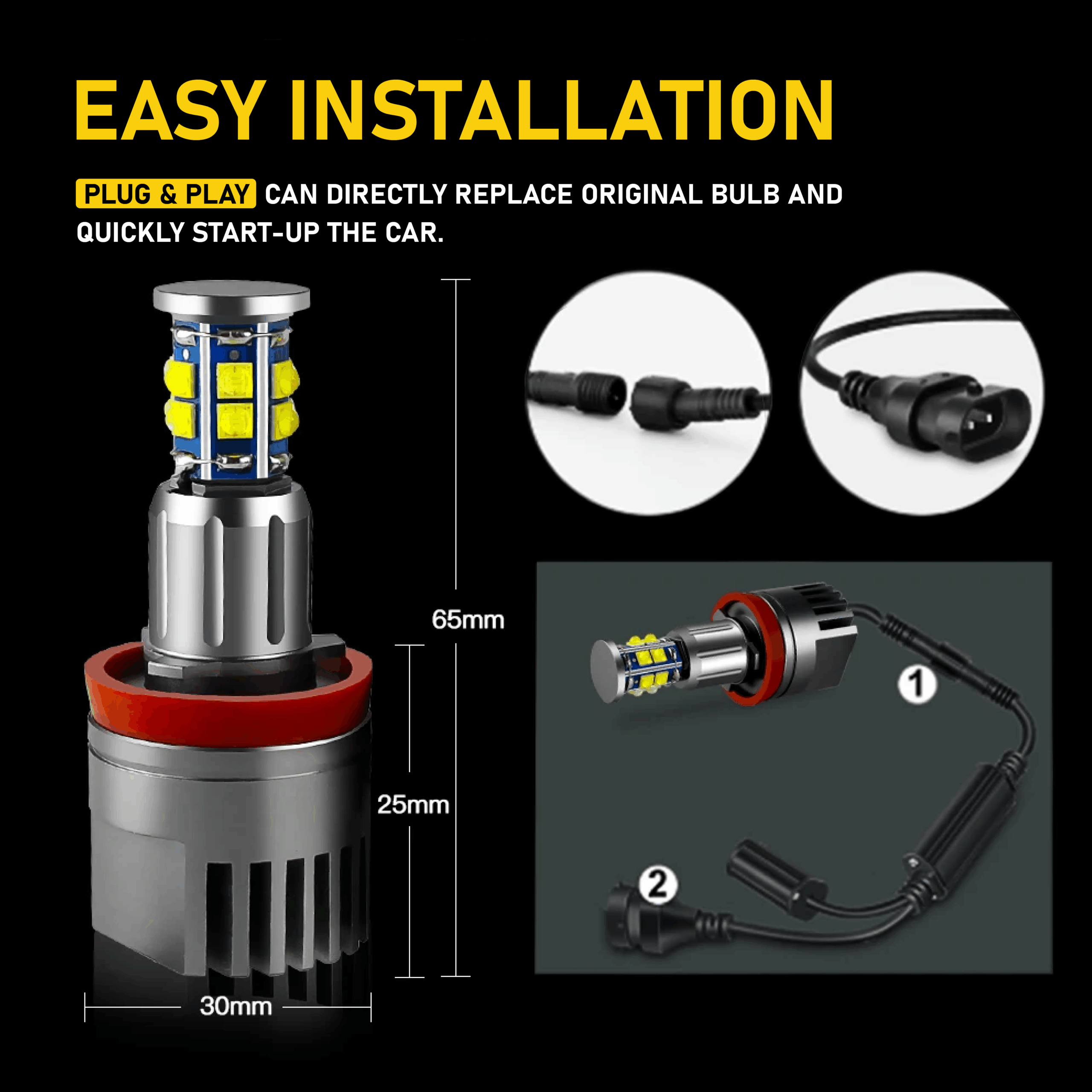 - Becuri LED H8 Angel Eyes 120W – compatibile BMW E60, E87, E92, E70, etc.