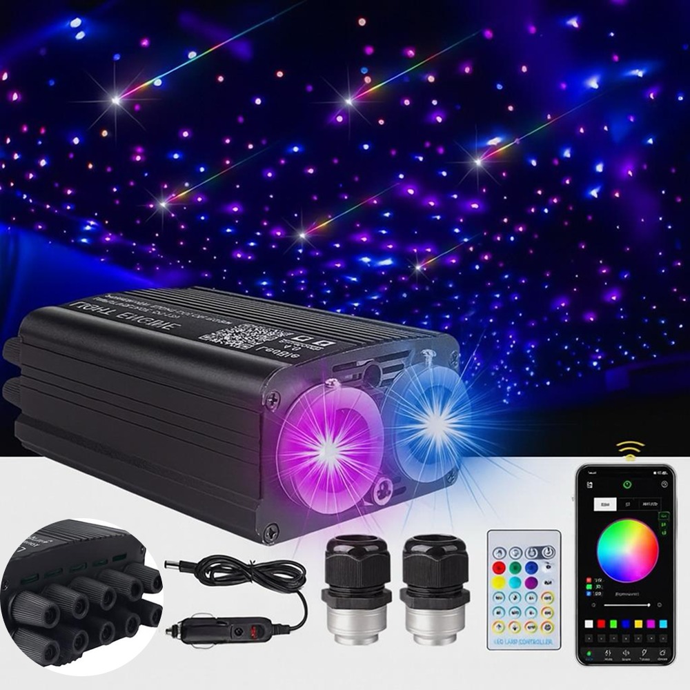 Transformă complet interiorul mașinii sau al casei tale într-un spectacol de lumini cu acest kit complet de plafon instelat, dotat cu funcții avansate precum efectul de stele twinkle și comete în mișcare. Sistemul include nu mai puțin de 1020 de fire de fibră optică, dintre care 900 oferă un efect realist de cer înstelat cu licărire reglabilă, iar celelalte 120 simulează meteorii care traversează cerul. Acest ansamblu este perfect pentru cei care doresc să adauge un plus de atmosferă, rafinament și inovație în spațiul personal, fie că este vorba de un autoturism sau o încăpere din locuință.