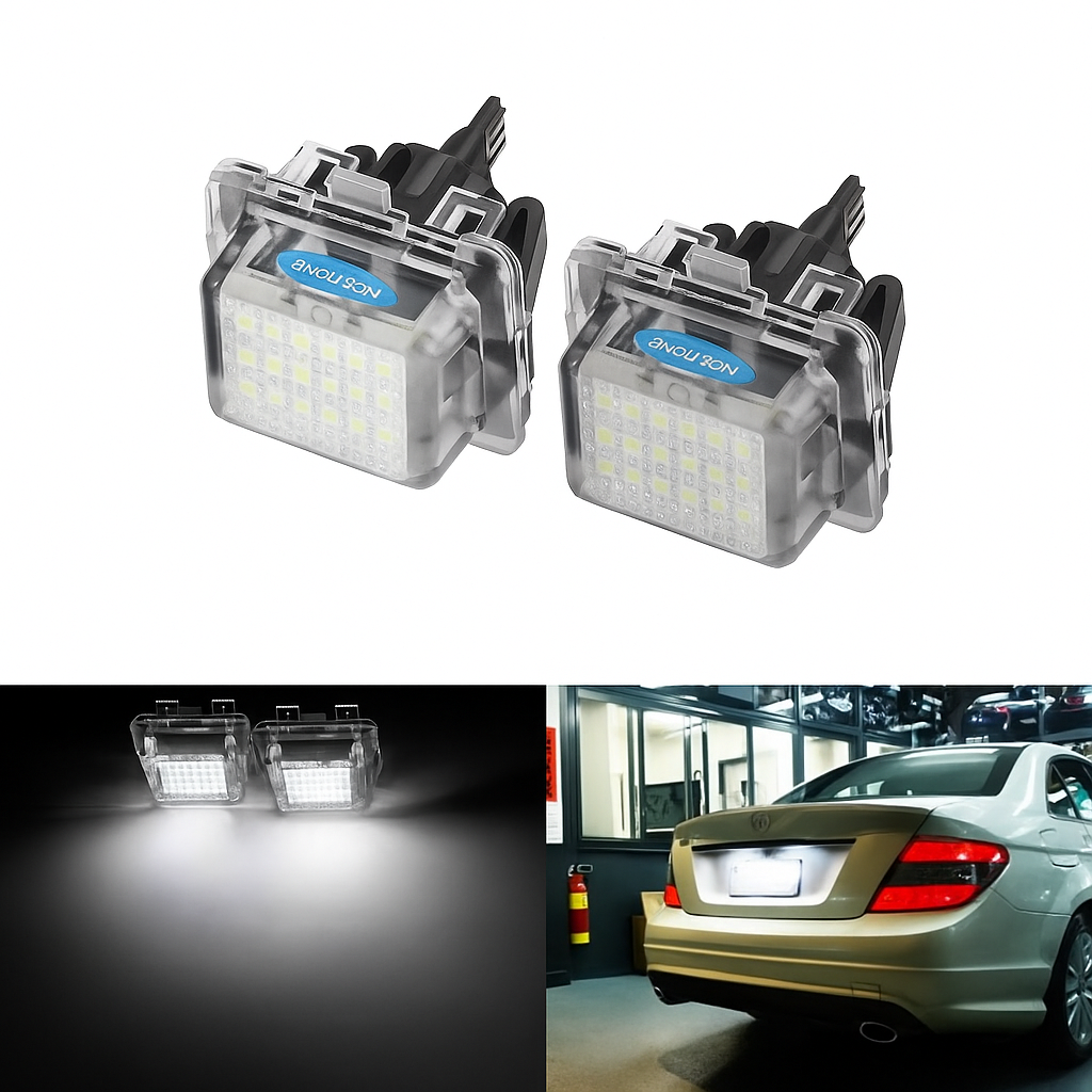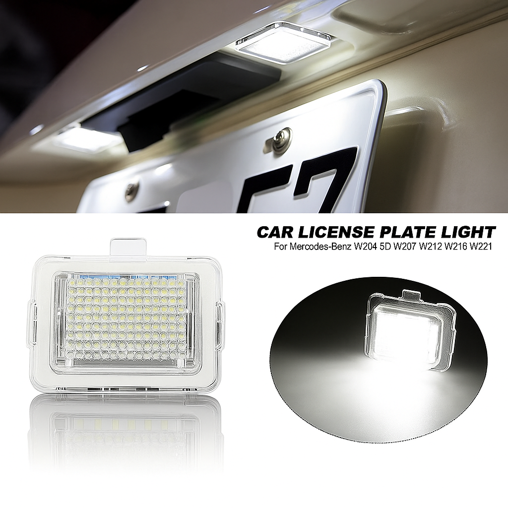 Acest set de 2 lămpi LED pentru numărul de înmatriculare este conceput special pentru modelele Mercedes-Benz și BRABUS, aducând un plus de lumină, stil și funcționalitate. Cu o temperatură de culoare de 6500K, lumina alb rece de tip xenon oferă o iluminare intensă, clară și elegantă, care sporește atât vizibilitatea plăcuței de înmatriculare, cât și aspectul general al mașinii. Aceste lămpi nu doar că îmbunătățesc vizibilitatea pe timp de noapte, ci adaugă și un aer premium vehiculului.