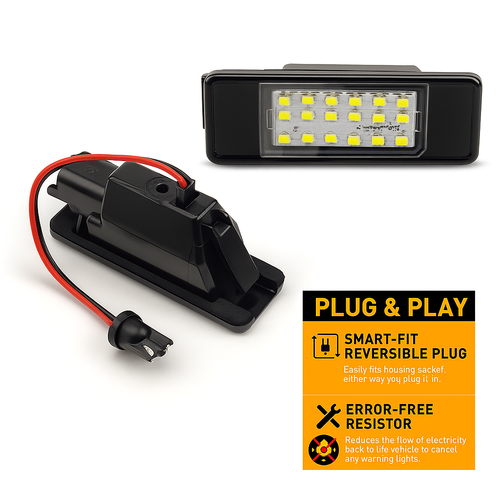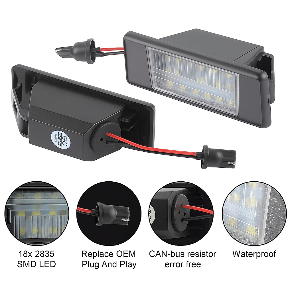 Fiecare lampă integrează 18 LED-uri SMD de tip 2835, cunoscute pentru eficiența luminoasă ridicată și durabilitate. Montajul se face extrem de simplu, datorită tehnologiei Plug & Play, fără a fi nevoie de modificări asupra instalației electrice, de decupaje sau adaptări. Conectarea se face direct în locașul original, păstrând integritatea vehiculului. În plus, tehnologia Canbus asigură compatibilitate deplină cu sistemele electronice moderne, eliminând apariția erorilor în bord sau a mesajelor OBD legate de iluminat.