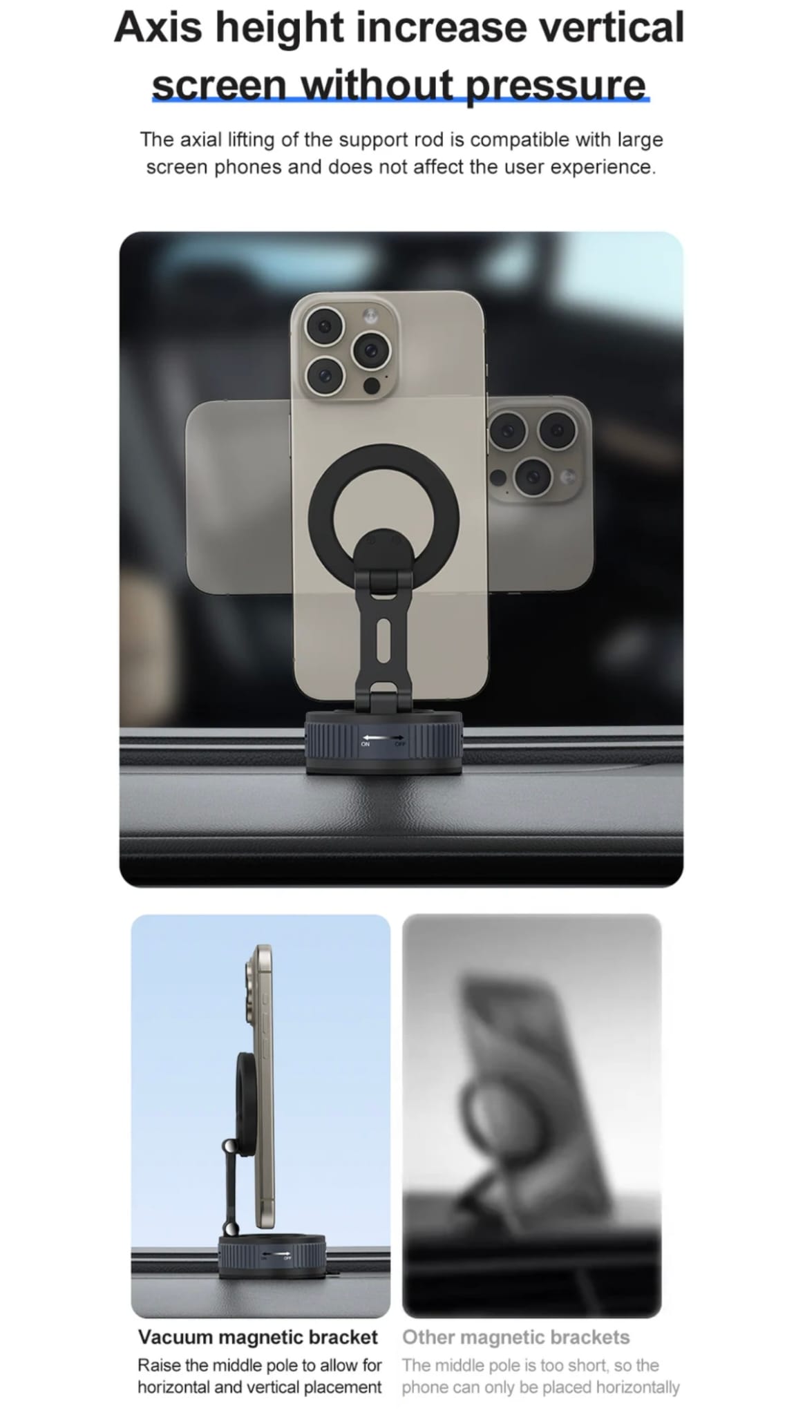 În concluzie, suportul telefon auto magnetic cu ventuză este un accesoriu indispensabil pentru orice șofer modern. Oferă fixare sigură, ajustare flexibilă, montaj simplu și compatibilitate extinsă, transformând fiecare călătorie într-o experiență mai organizată și mai sigură.