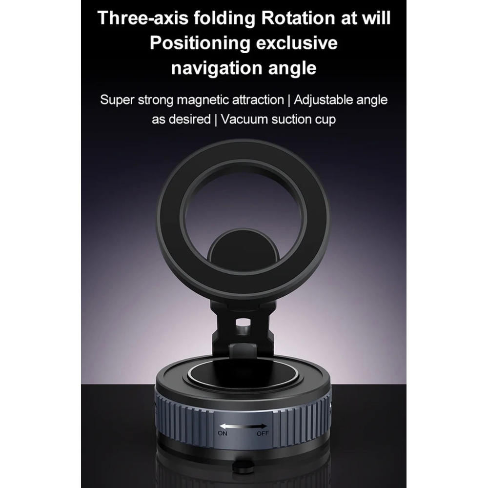 Suport Telefon Auto Magnetic cu Ventuza Puternica, Rotatie 360°, Reglabil pe Mai Multe Axe, Compatibil Universal Smartphone, Fixare Stabila Bord/Parbriz, Design Compact Pliabil, Negru