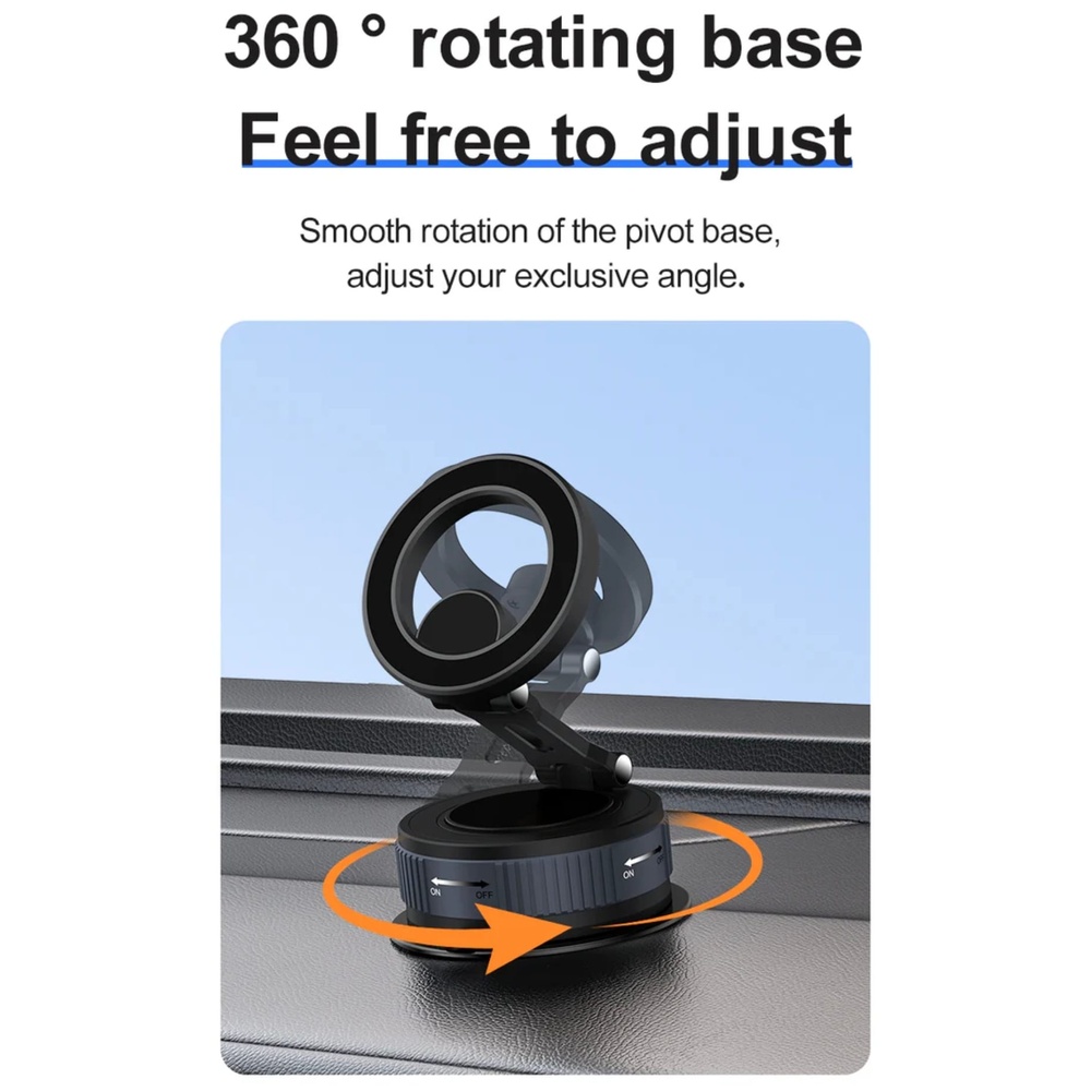 Acest suport telefon auto magnetic cu ventuza si rotatie 360° ofera fixare sigura si acces rapid la smartphone, fiind ideal pentru navigatie si utilizare hands-free in timpul condusului.